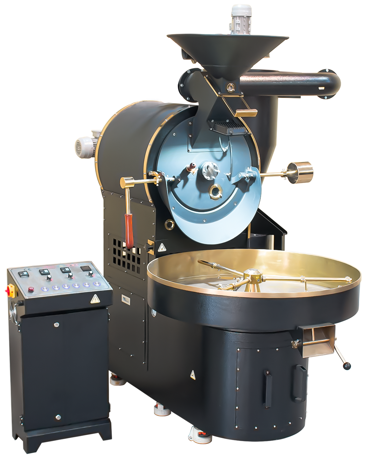 Roasted drum with air cushion. Gas burning system is specially designed for roasting to control the generation of aroma, sourness, bitterness and aftertaste for coffee beans during roasting.